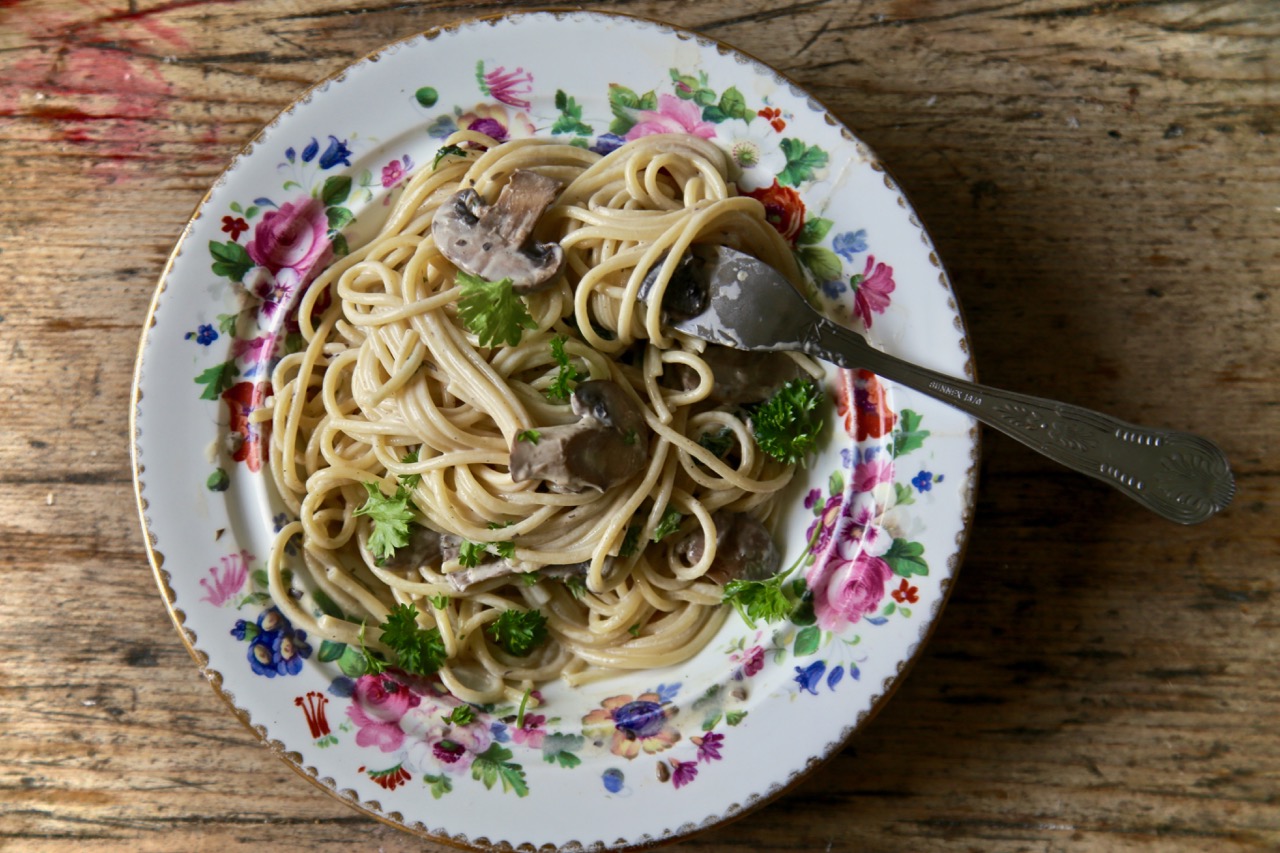 mushroom, cream and sherry spaghetti