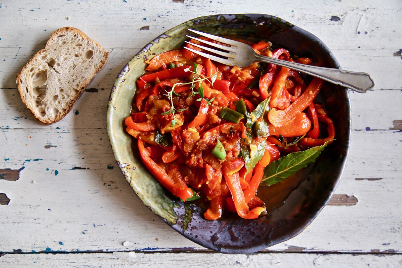 Since my visits to Bordeaux last year, I’ve been regularly using ‘piment d’espelette’, an orange pepper grown in the Basque region of France and Spain. One of the most popular dishes that uses this uniquely European pepper is Piperade.