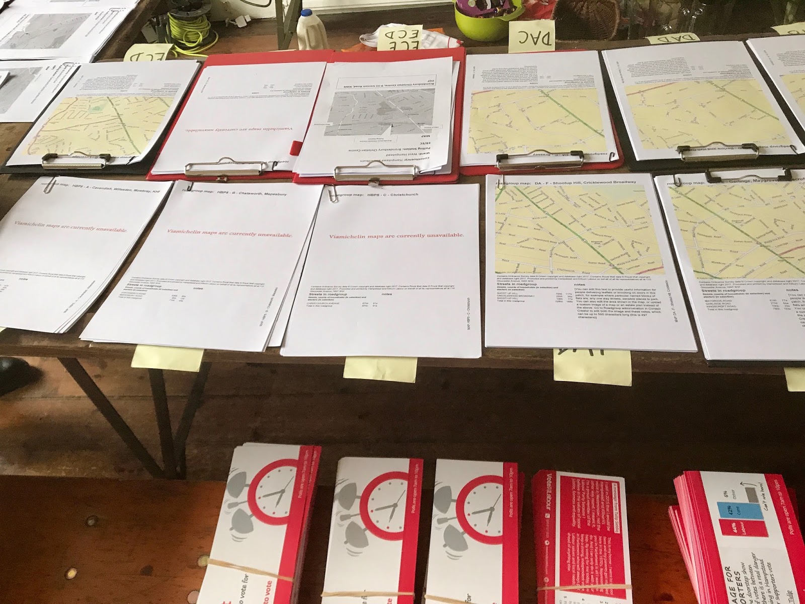 In the committee room, it’s becoming crowded. The local Labour party have been steadily canvassing every weekend and night for months. They know each street. They know who votes what. They get ‘promises’ of who will vote Labour. Throughout the day, a guy called Eugene runs around to all the polling booths and asks the Tellers for their sheets of numbers. The voting card numbers are passed onto the person running the committee room who then sends out a team.