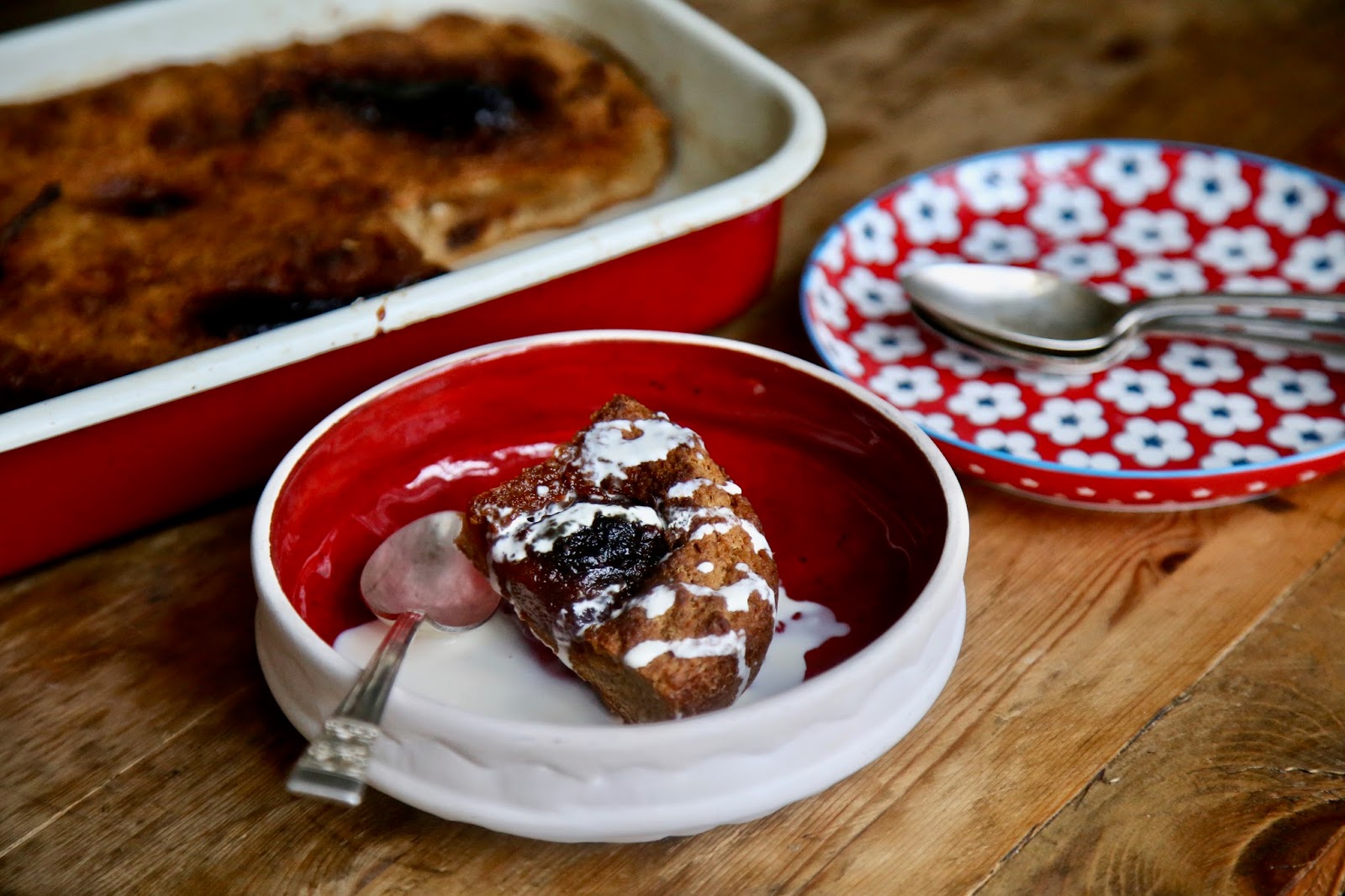 Then I remembered the bread pudding that my Nanny Savino made. It was the old war-time rationing style bread pudding, heavy, sweet, comforting. Nanny Savino sold squares of it from her council flat front door in Holloway, along with toffee apples and Woodbines. This dish is from a time when nobody threw anything away.
