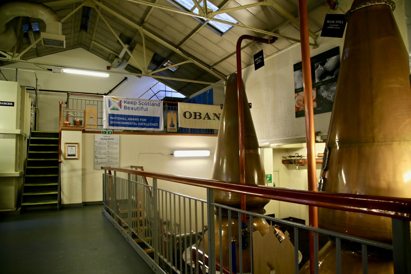 I visited the Oban whisky distillery and the first thing I learnt was that I wasn’t allowed to take pictures or my phone. Any electronic goods could cause a spark and blow up the distillery. You need a special license to take photographs. The picture above of the copper stills had to be taken from the doorway.