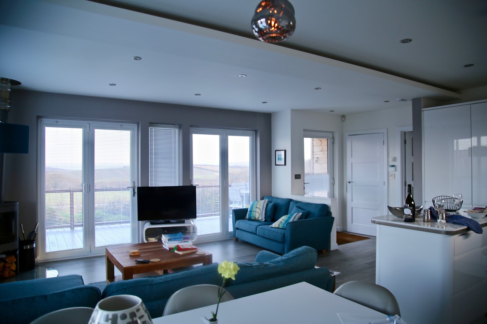 Gwel an Mor is a resort with eco lodges and Swiss chalet style huts. We stayed in a spanking modern lodge, all shiny white surfaces and subtle aquamarine furnishings. There was no kettle, instead a hot water tap. Making a cup of tea or coffee couldn’t be easier but you tend to make it for yourself rather than it being a communal ‘who wants a cuppa?'(The electric kettle is so ubiquitous in the UK that when important TV programmes are on, we have to borrow electricity from France to cope with the demand during ad breaks.) There was also a wood burner and a jacuzzi on the private terrace outside my bedroom door. The insulation was so good that menopausal me had to sleep with the door open.