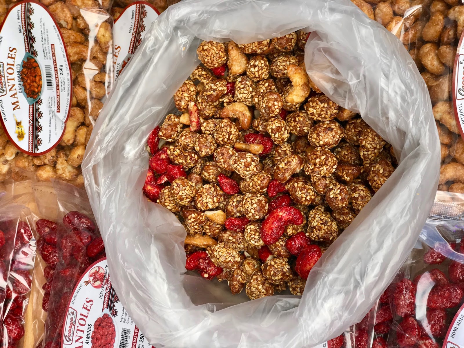 nuts covered in pomegranate syrup and sesame seeds, Cyprus pic: Kerstin Rodgers/msmarmitelover.com