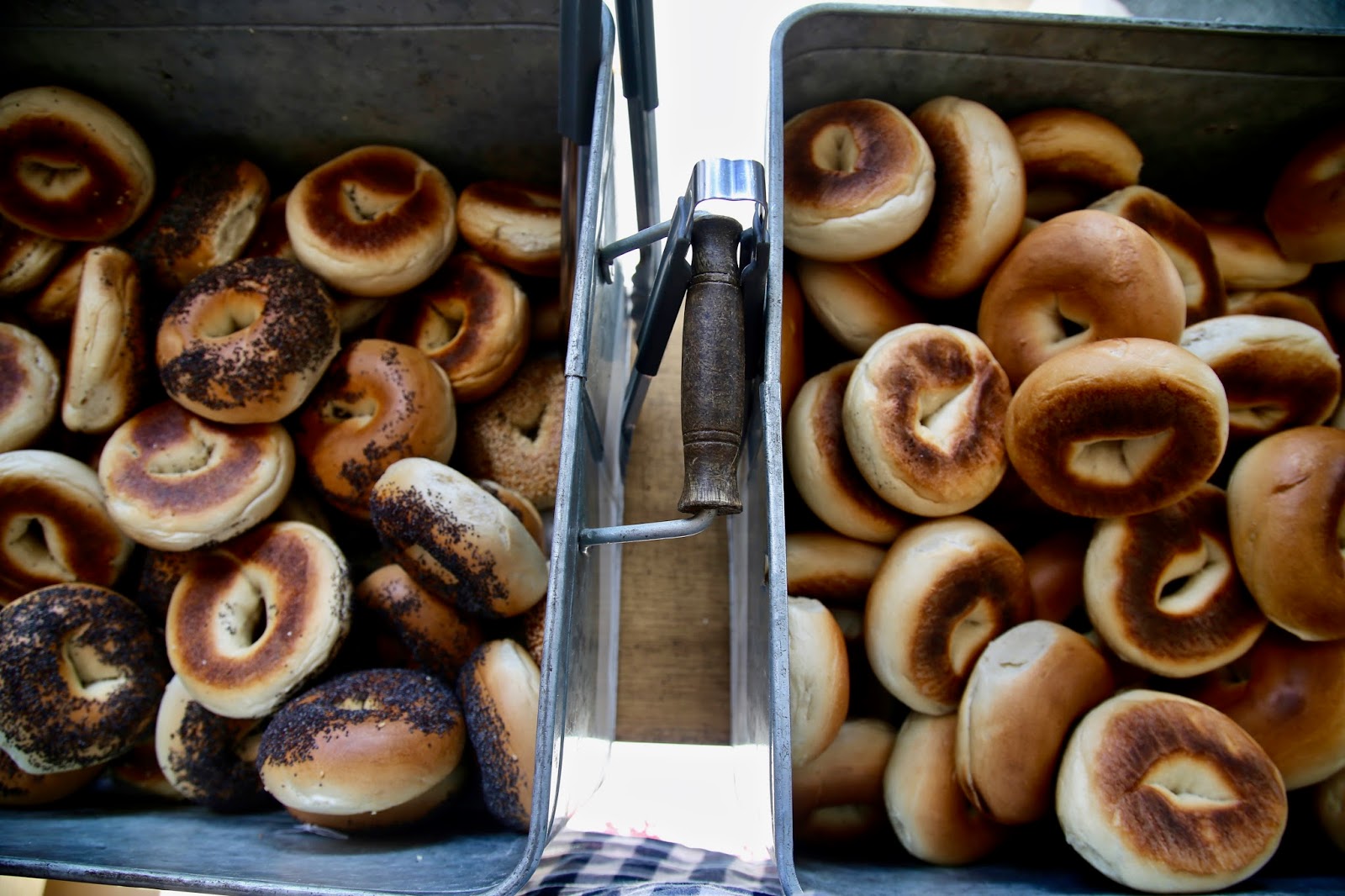 Bakery on site, in the back, this bagel shop does plain, poppy seed and the rarer (in this country at least) onion bialy. West Hampstead, being close to Golders Green and Hampstead Garden Suburb, still has a large Jewish population who like to buy their baked goods, lox and schmear here.