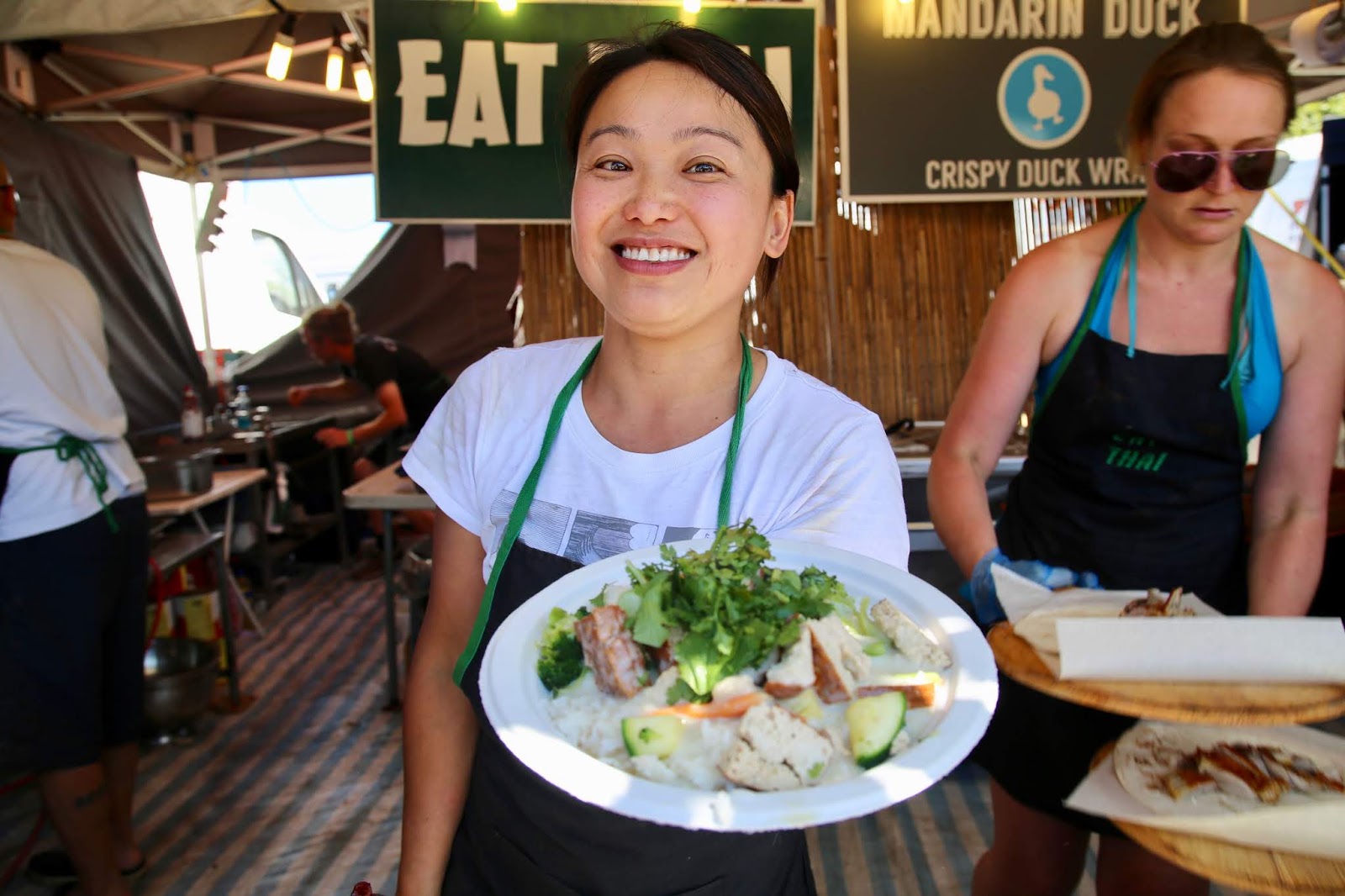 Bangwok, run by chef Dong (pictured above), consistently had the longest queues and it serves what it says on the tin – Pad Thai. I had the vegetarian one: fried rice noodles with peanuts, chilli and sauce.