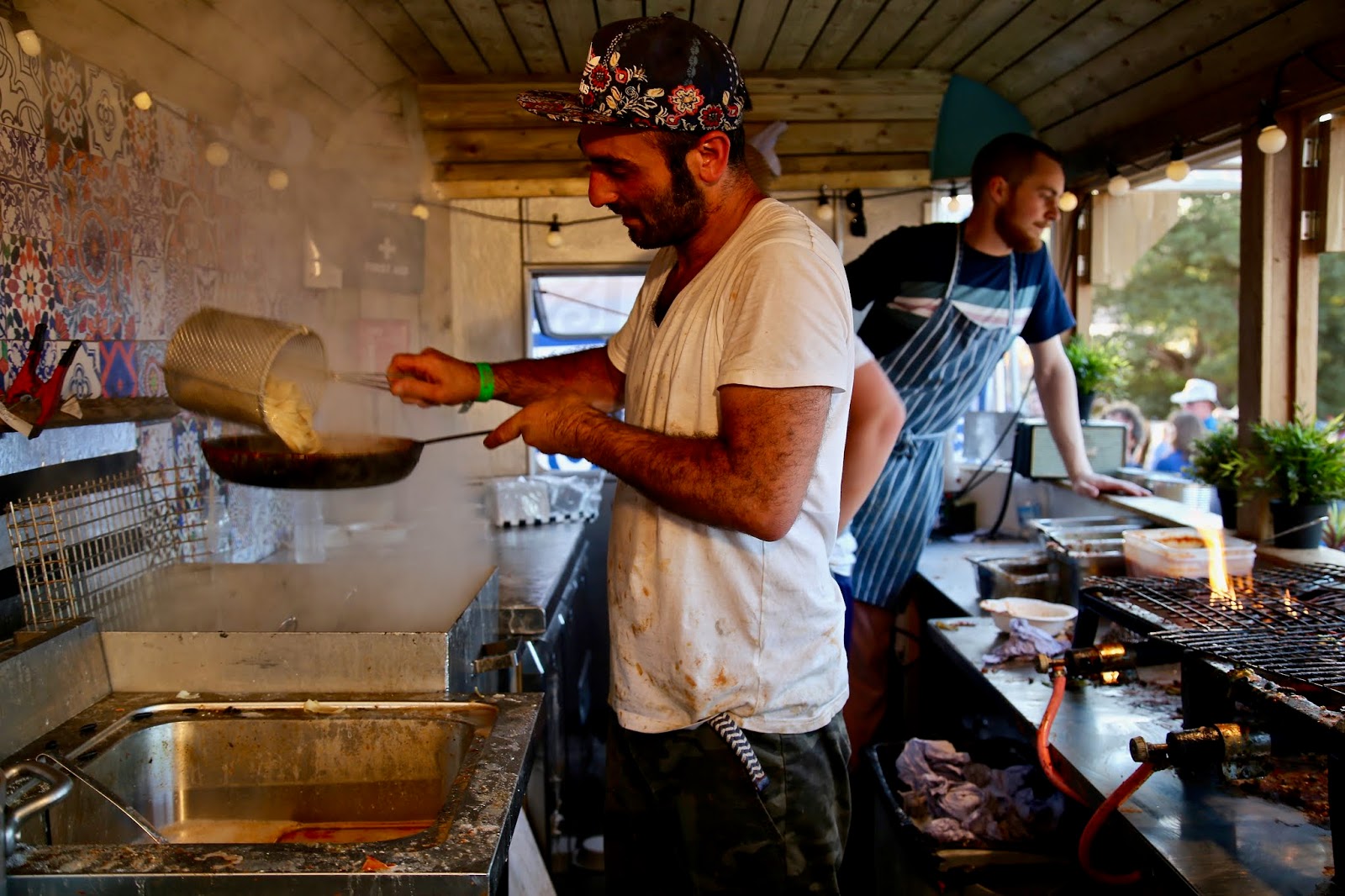 Today festival food costs on average between £7 and £10 a plate. It spans world cuisine, you can eat Chinese, Indian, Venezuelan, Japanese, Vietnamese, Thai, Italian, British (tea and crumpets), Mexican, American food including Southern (fine dining BBQ,) New Orleans and New York, Scandinavian, Greek, Middle Eastern, Spanish, Portuguese, Caribbean, Tibetan, Indonesian, Swiss, Argentine. In fact the only major cuisine that isn’t really represented is French.