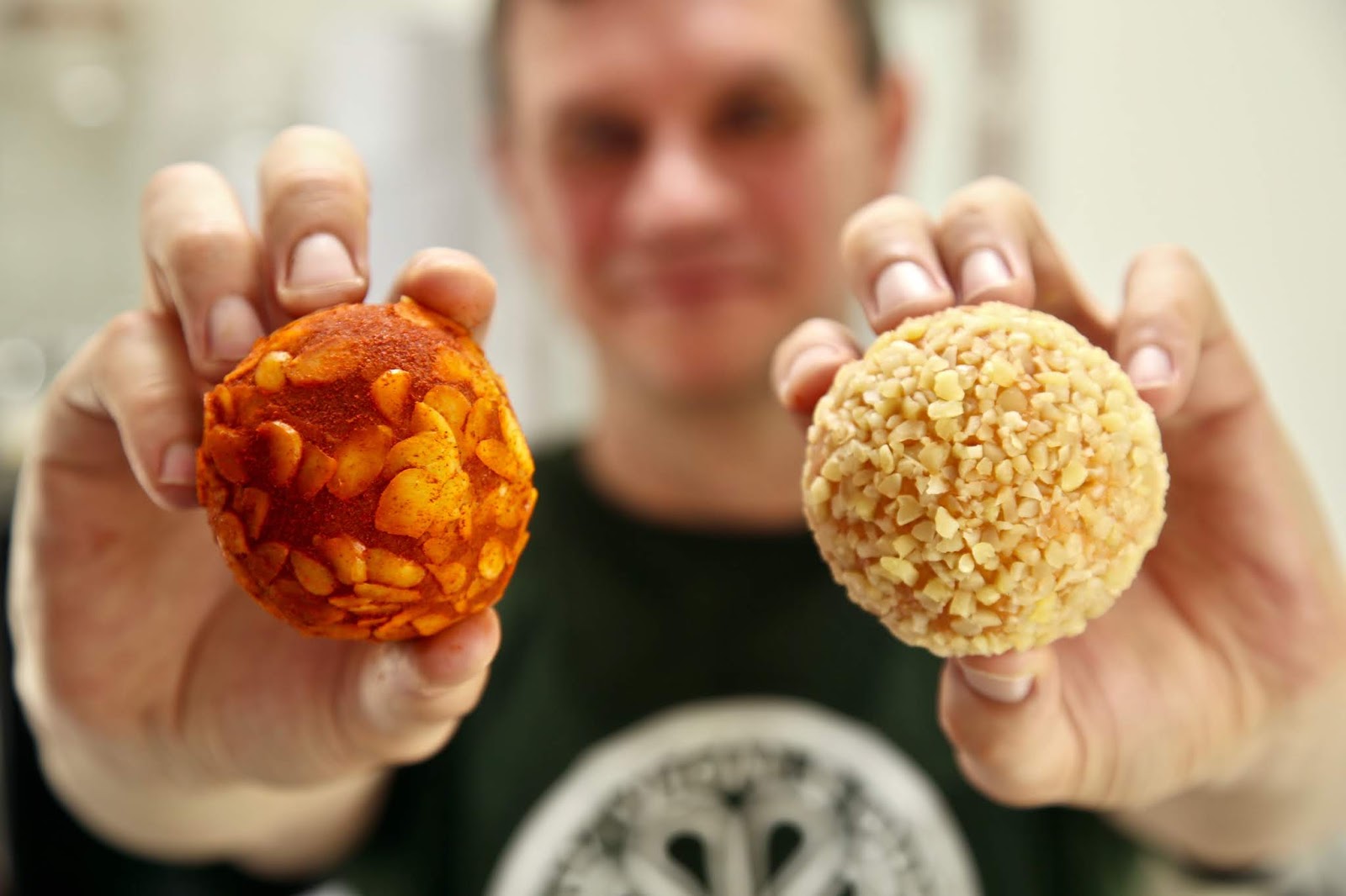 No, I just worked on it myself. There was a bit of trial and error. With the original cheese ball, it wasn’t selling, then I added tomato powder to it, which made it sweeter, and it started selling well. It’s all about pumping up the flavour.