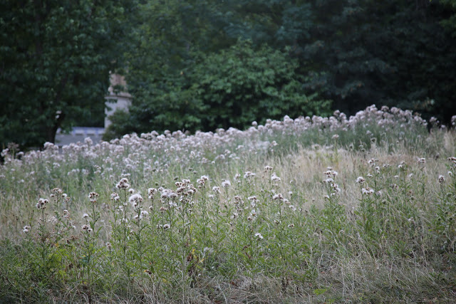 There are three ponds, fed by natural springs, where ducks slide across the dark green water. Huge trees, oaks, sweet chestnuts, silver birches, bat boxes nailed to the upper reaches, span the walkways. Some of the more structured gardens contain marble sundials. In the meadow clearings, I’m sure I spied wild carrots. The air is fresher too.