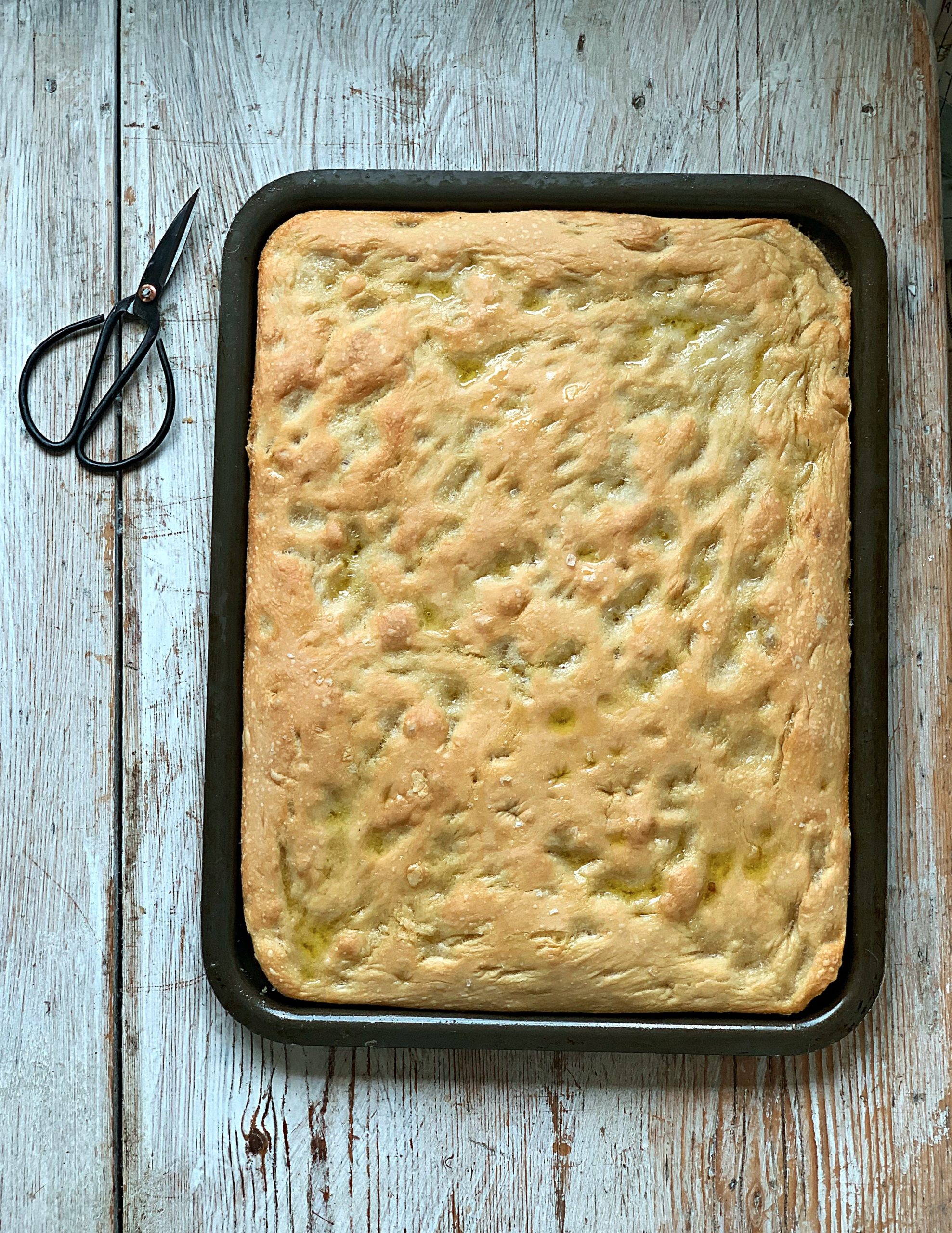 The chef made a version of focaccia that he said was baked with a brine. This intrigued me, so I searched the internet, coming up with Samin Nosrat’s ‘Ligurian Focaccia’ recipe. It is chewier that my usual focaccia. The watery brine slightly boils the dough, giving a slight bagel texture. It’s very salty, which is no bad thing in my book, and has beautiful airy holes in the body of the dough.