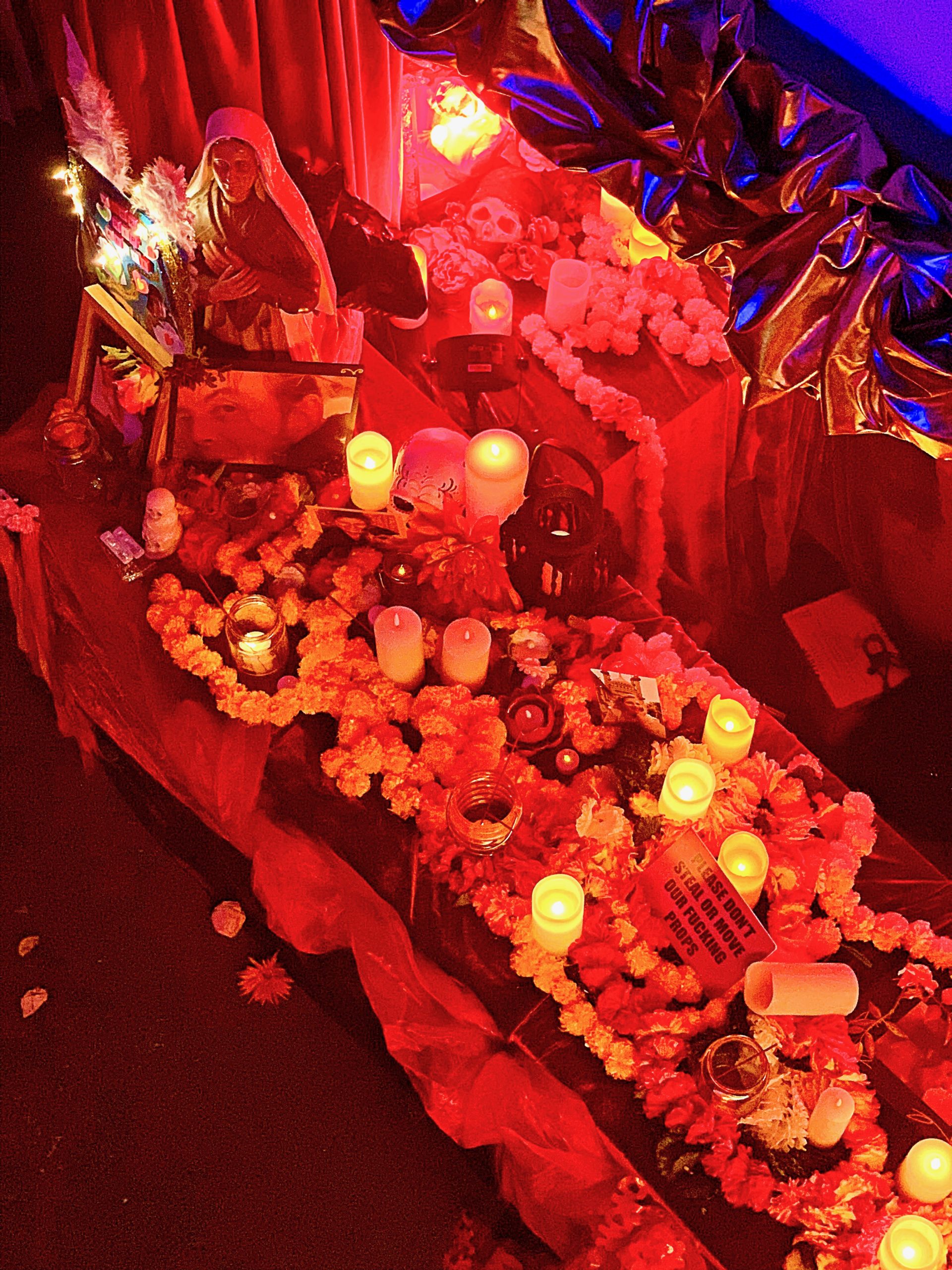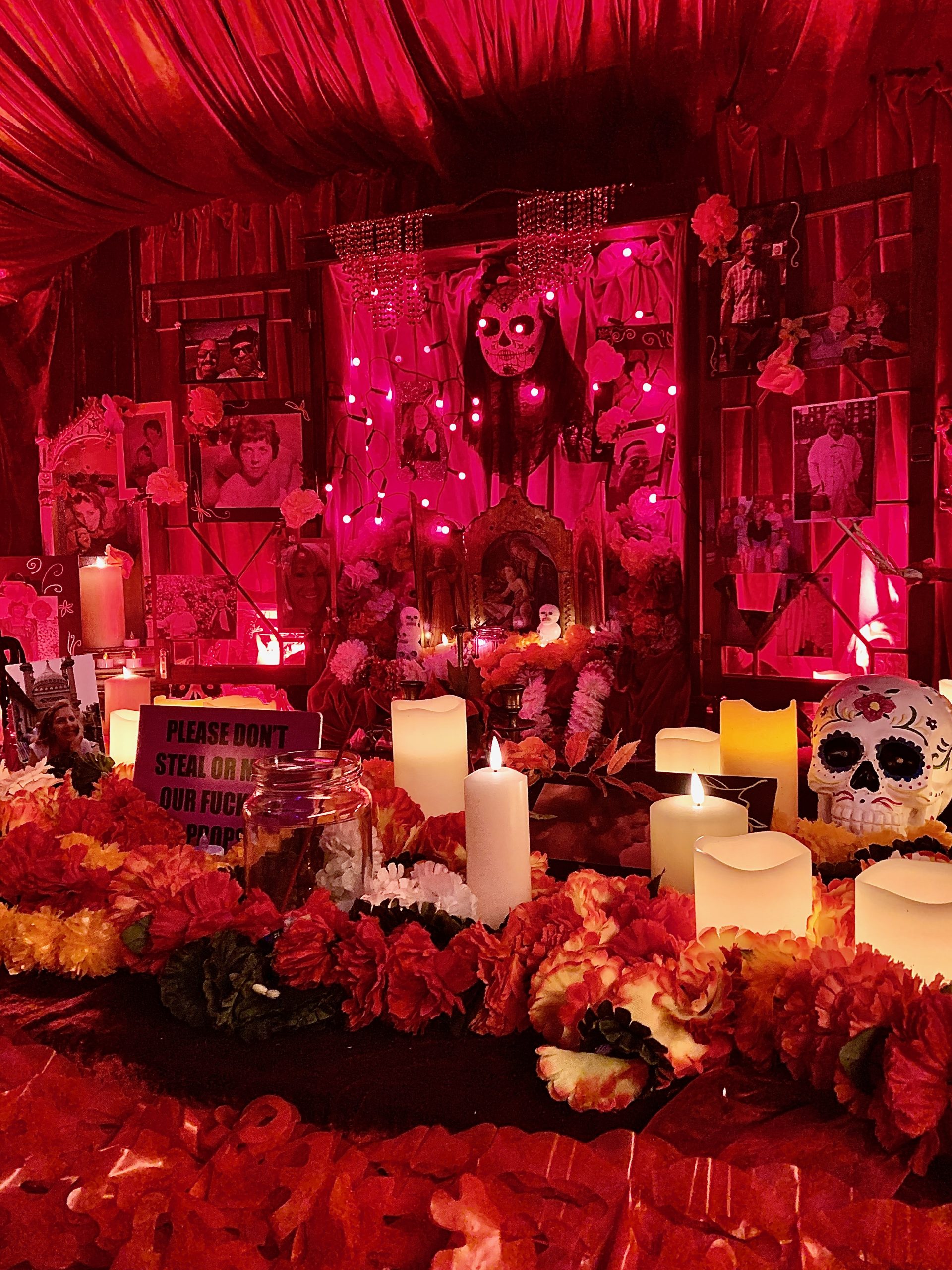 At the entrance there was a halloween shrine to the dead: amid the pumpkins, the candles and the ‘Don’t steal our fucking props’ sign, there were photos of the recently deceased, whether through Covid or other means I’m not sure.