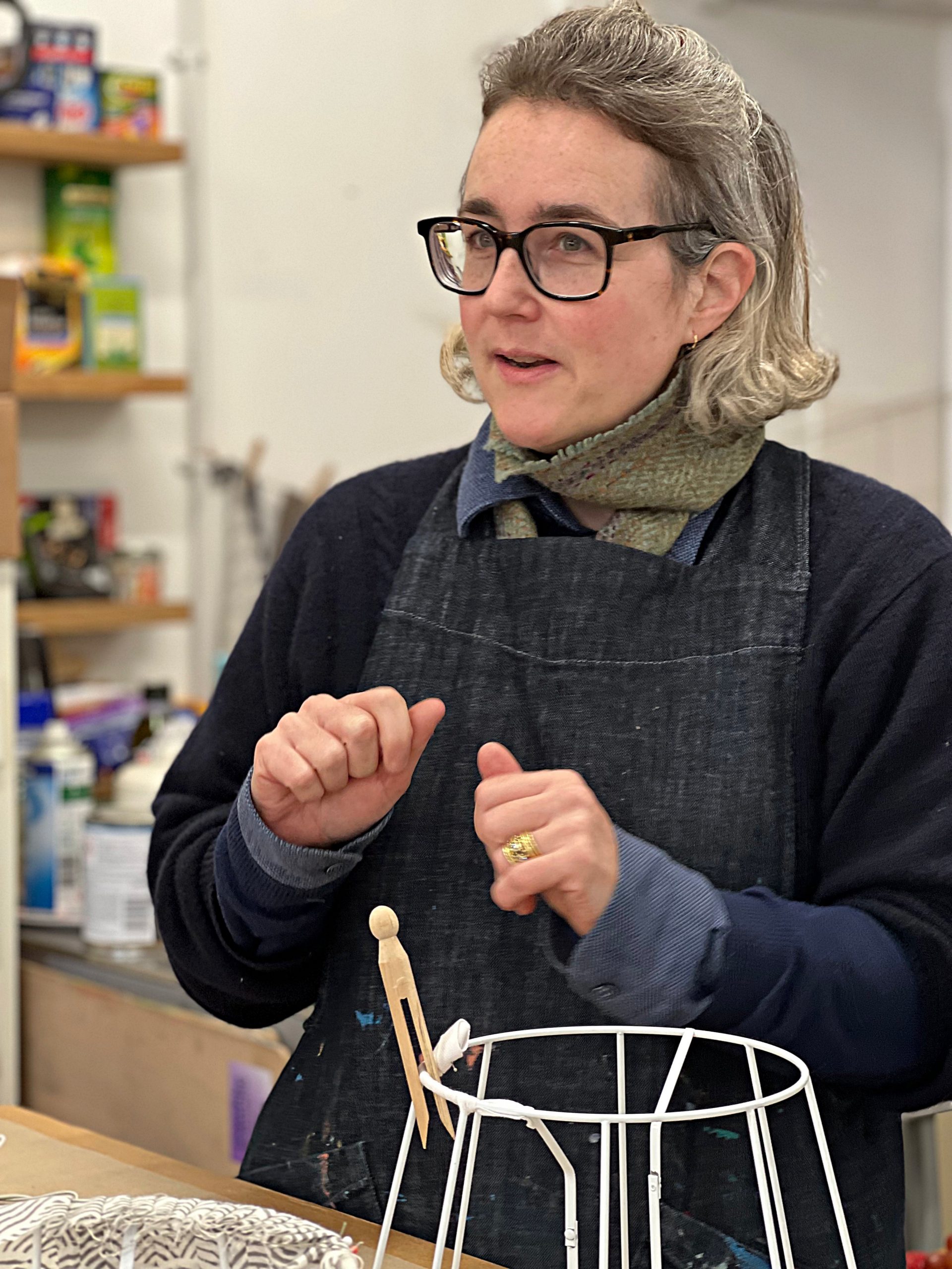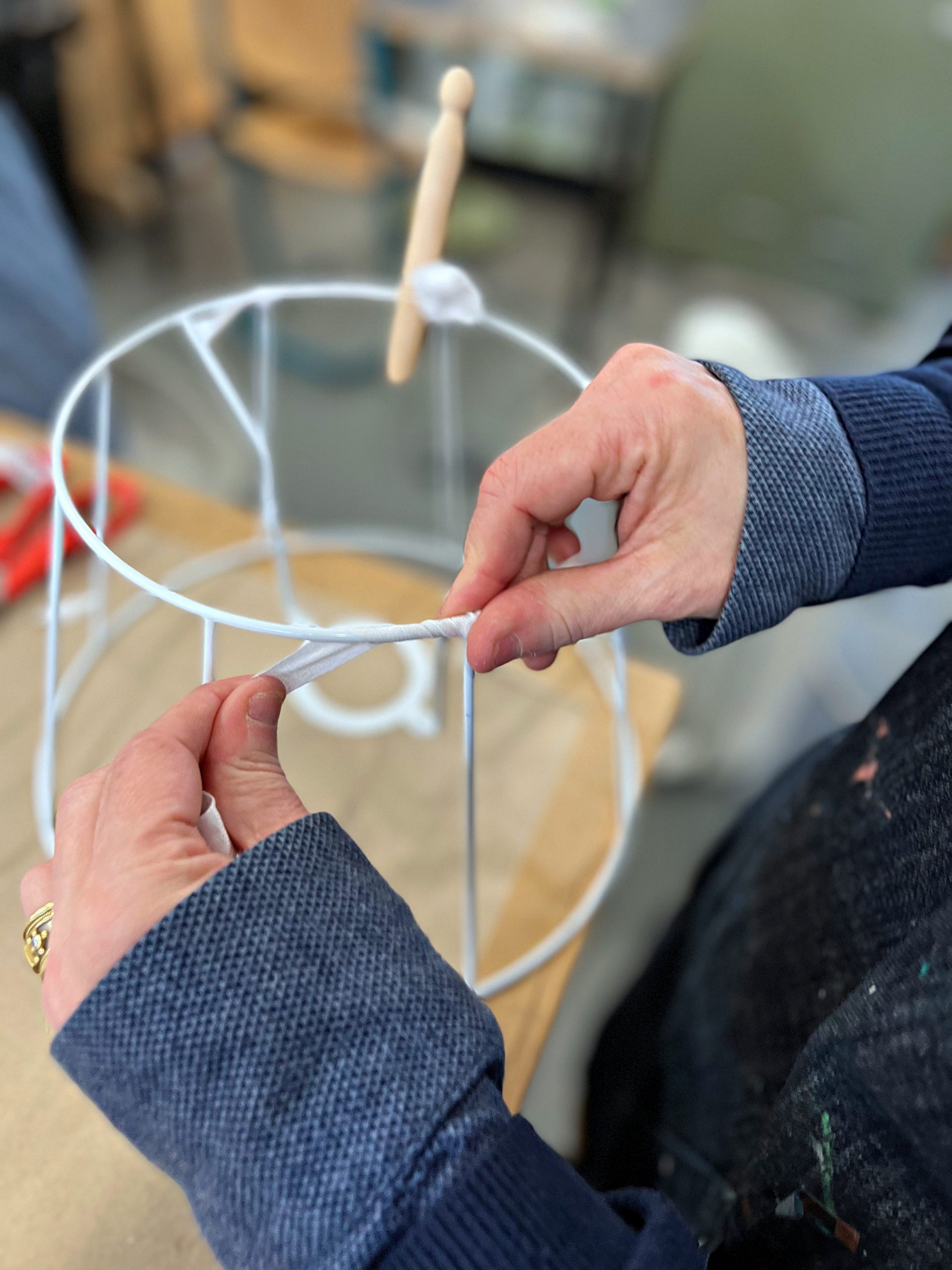 Our teacher Lottie Cole set up this small workshop business last autumn. Along with lampshade making, they also run courses in renovating furniture with Annie Sloan paints, life drawing and natural dye making amongst other skills. But the lampshade making is the most popular as ‘classes are like hen’s teeth’. Lottie explains the popularity of lampshades ‘they are the thing you can easily change in a room, like the earrings on an outfit’.