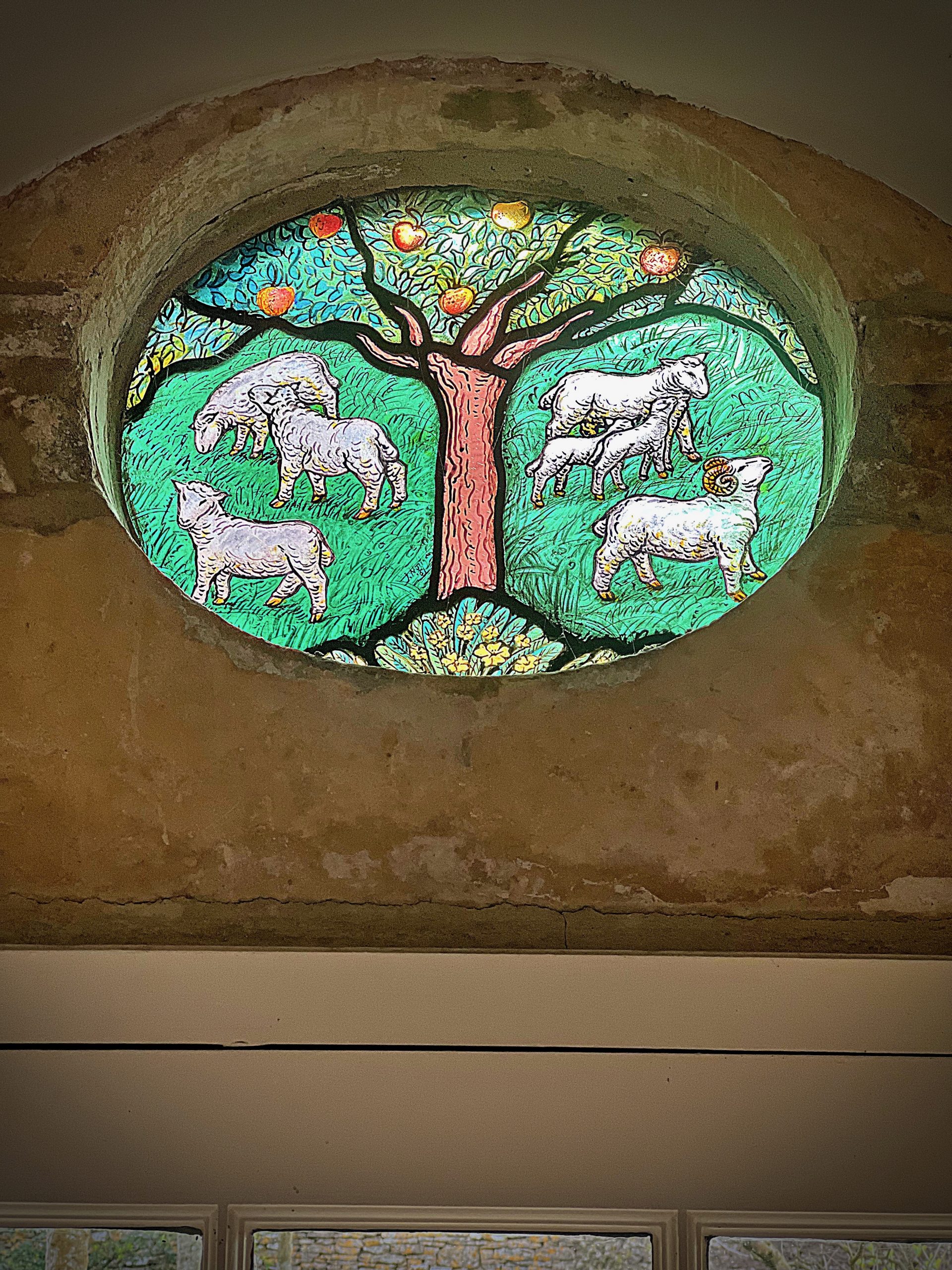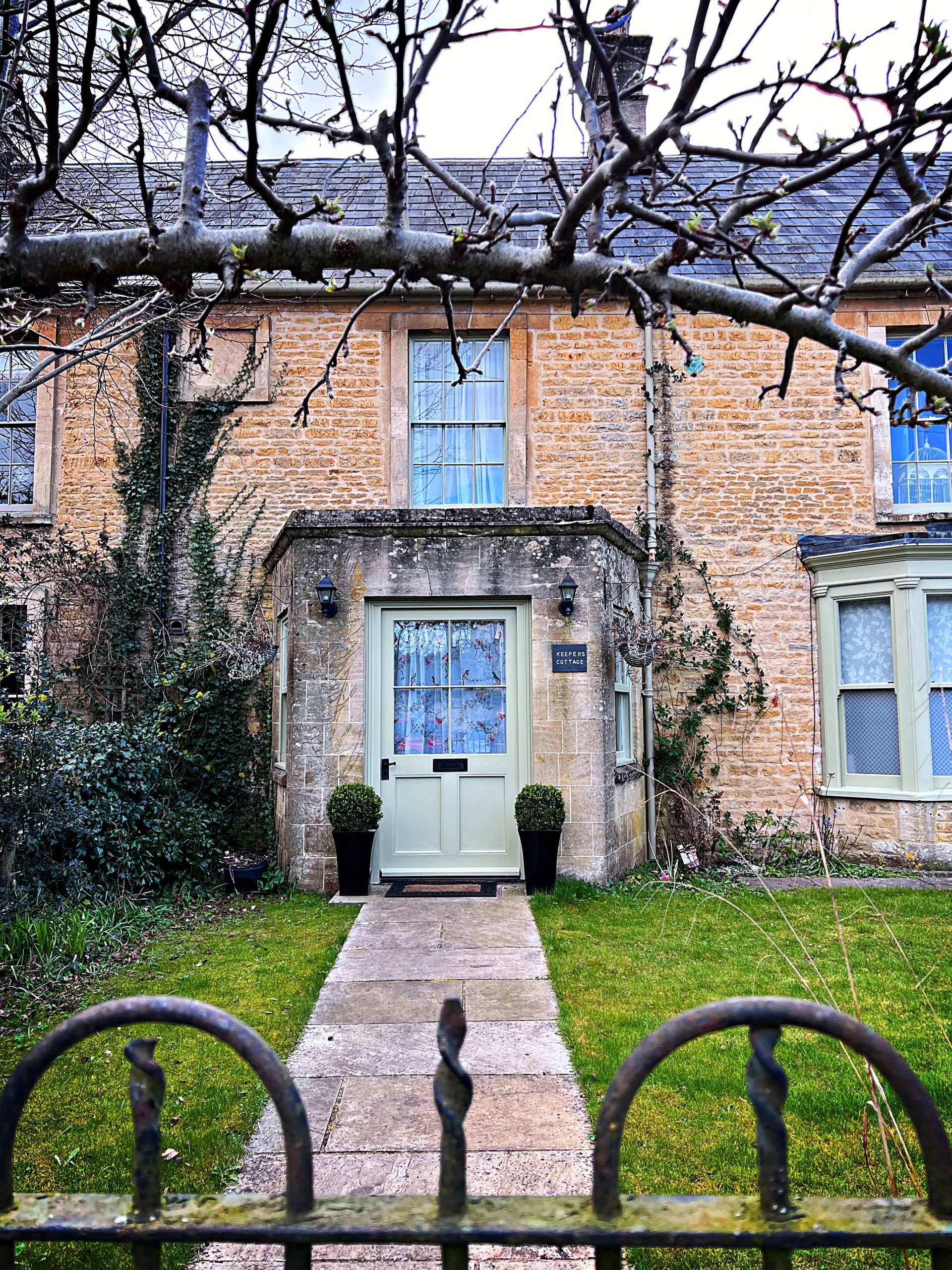 I drove up and around Hawling village three times looking for a cottage called The Coach House. Eventually I spotted a local who pointed at a stone gate with the faint words chiselled – Old Rectory. The gate opened and inside was a complex of three or four houses, all honeyed limestone and fluorescent yellow daffodils against unfeasibly green grass. Which one is The Coach house? I found a house with the keys in the door and ventured inside, Goldilocks-style. It was beautiful. Huge arched windows, a log fire, a tiny stained glass window with sheep painted on, cosy bedrooms with fluffy cloud duvets, a green-painted ships’ desk.