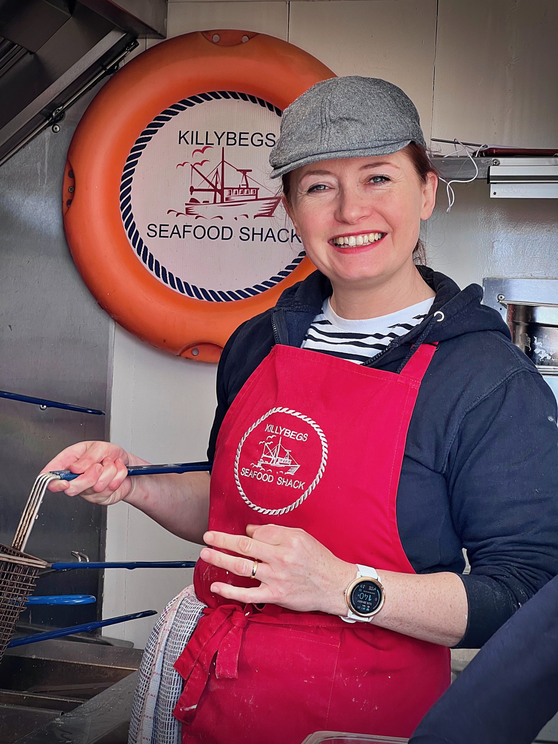 Anderson’s boat house isn’t open until 3pm. ‘It’s because his wife is working in the Seafood shack on the front until then,’ someone informs us. I see a sea facing pub serving Killybegs ‘Number 1 Guinness’. A red-haired family sit outside. Everybody says hello.