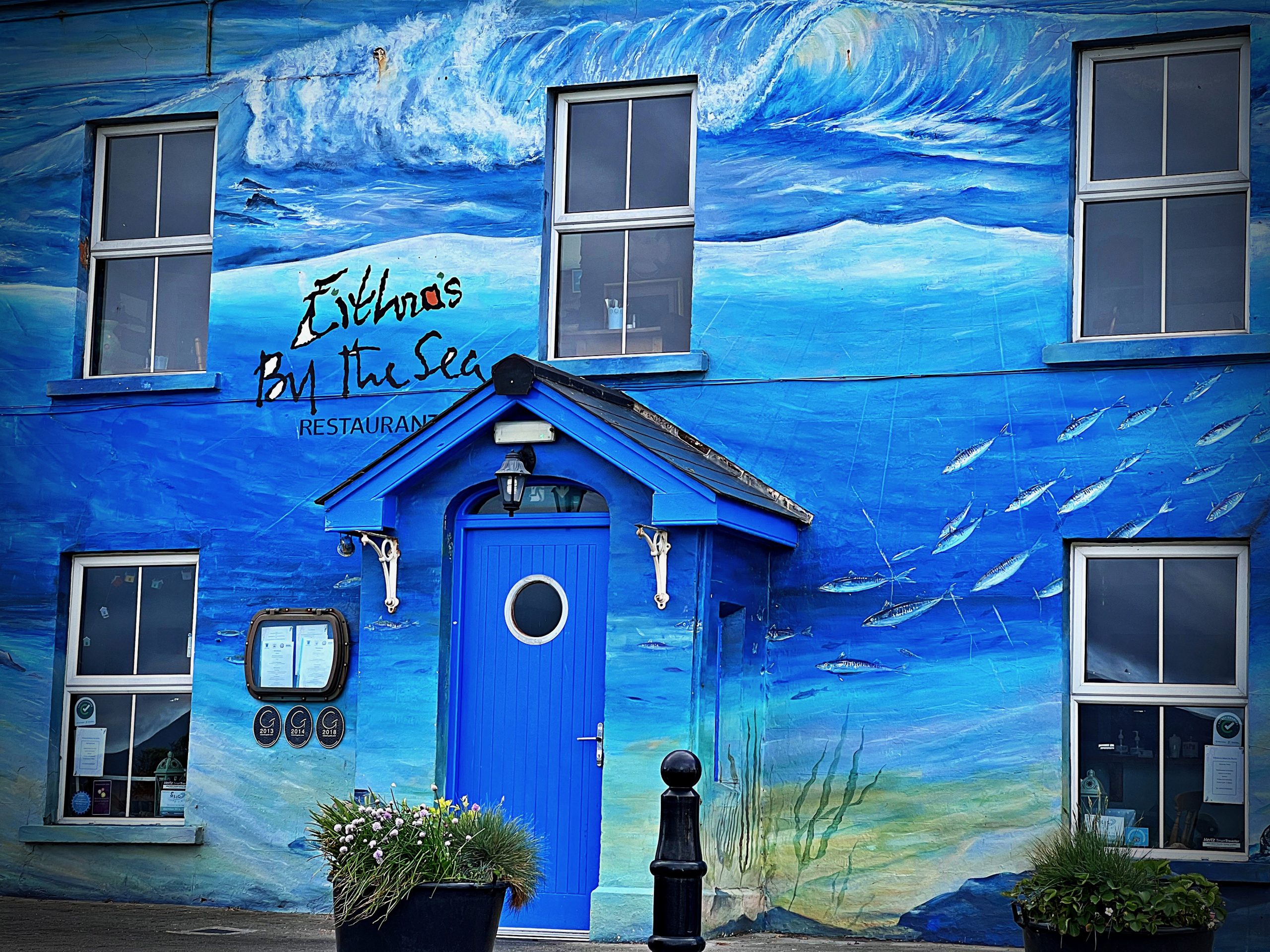 Our last meal was at a restaurant I recommend to everyone, Eithna’s by the sea, run by Eithna herself. She’s designed an interesting menu using local ingredients: my mum had a hot garlic butter lobster Thermidor half, my sister a whole sea bream, and my dad and I with polenta-coated fish and chips. There was a Nori chocolate meringue for dessert, which I will attempt to recreate. Eithna has only just opened up again after Covid.