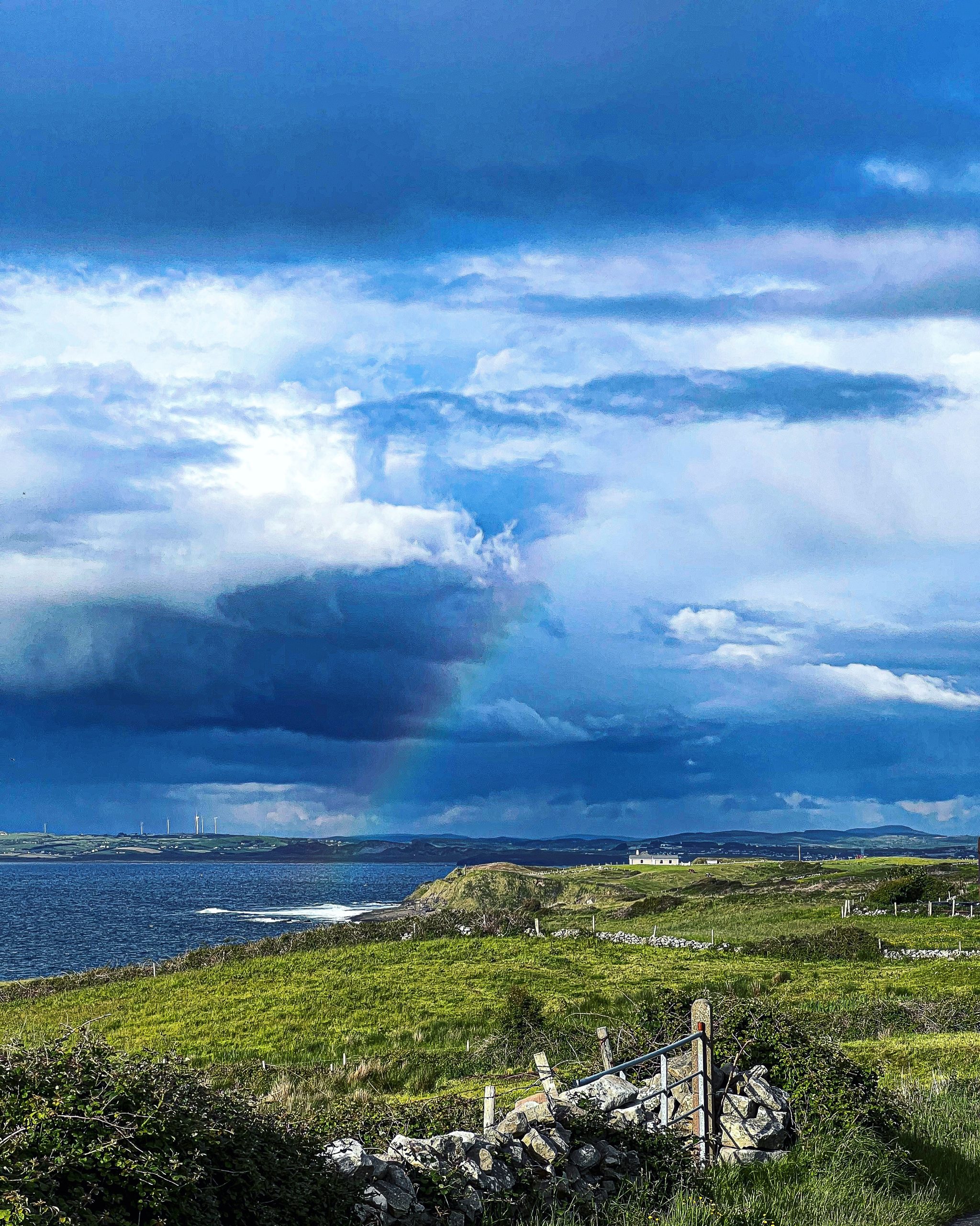 My great-great-grandfather John Rodgers was a postman in Tullaghan, a beautiful coastal village not far from Bundoran. Across the sea, we see a rainbow and imagine a pot of gold and leprechauns dancing at the end of it. We try to guess what cottage he lived in.