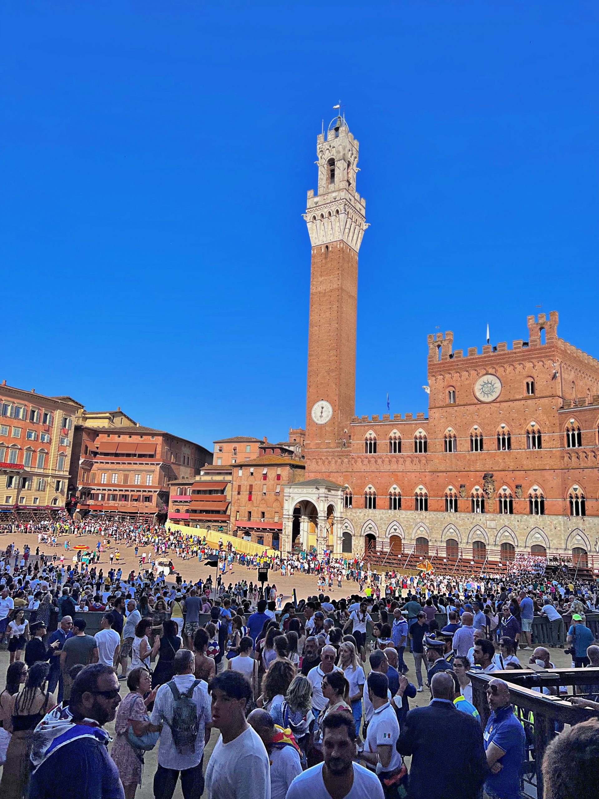 This is my third time in Siena and my second time at the Palio, the historic horse race around the perilous shell-shaped main square. I like it so much I even named my daughter Sienna.
