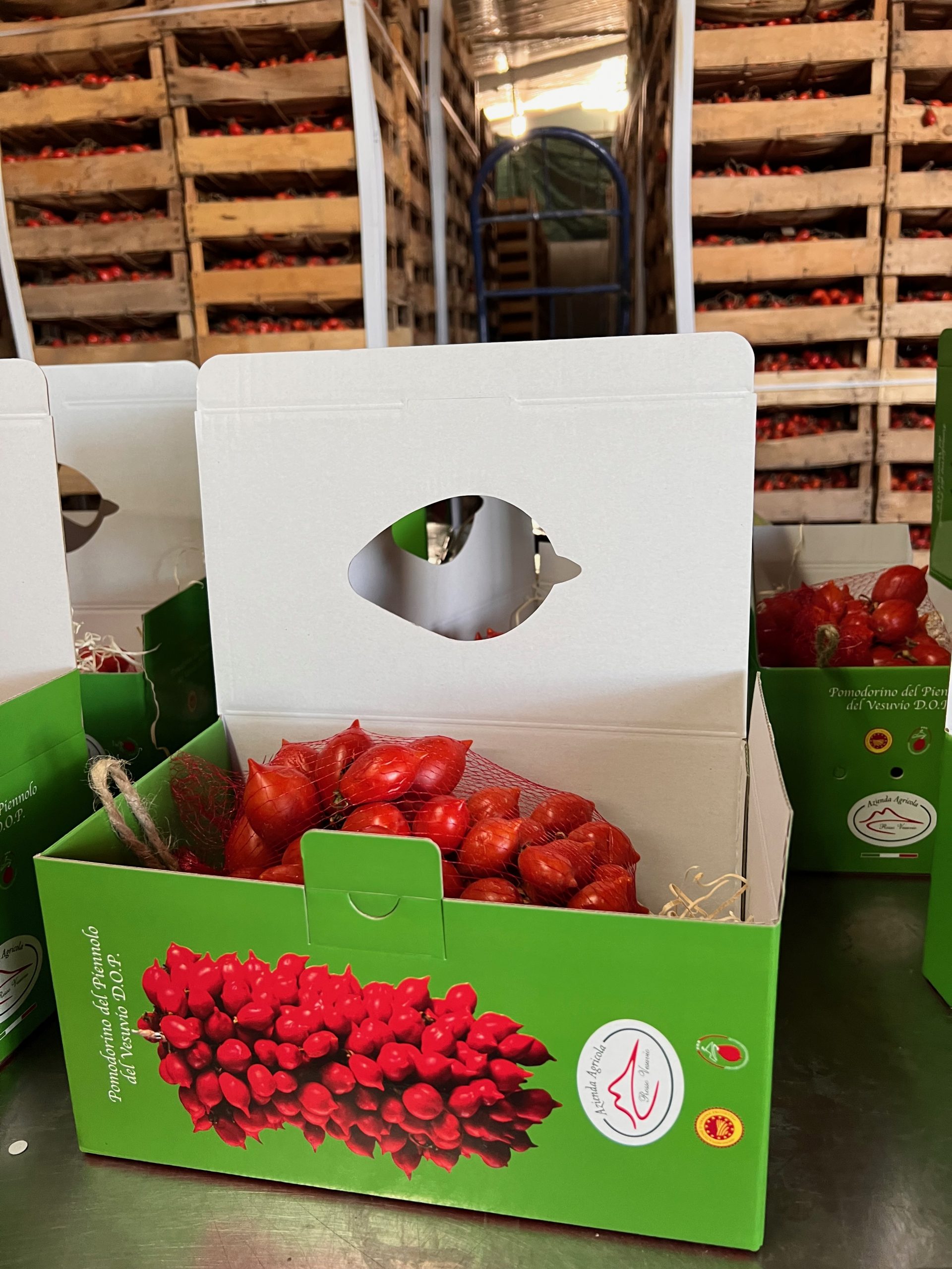 I travelled this time to find out more about the Christmas tomato or piennolo di Vesuvio. In November and December these tomatoes are braided, using the vines, by local women into bundles, who tie them into 1.5 kilo bunches. Piennolo hang everywhere: outside grocers, on balconies and in kitchens. The boxed bunches, costing 15 euros usually, are given as gifts. I brought home two boxes; half I hung up, the other half I roasted with olive oil and garlic. Some for sauce and some for a soup.