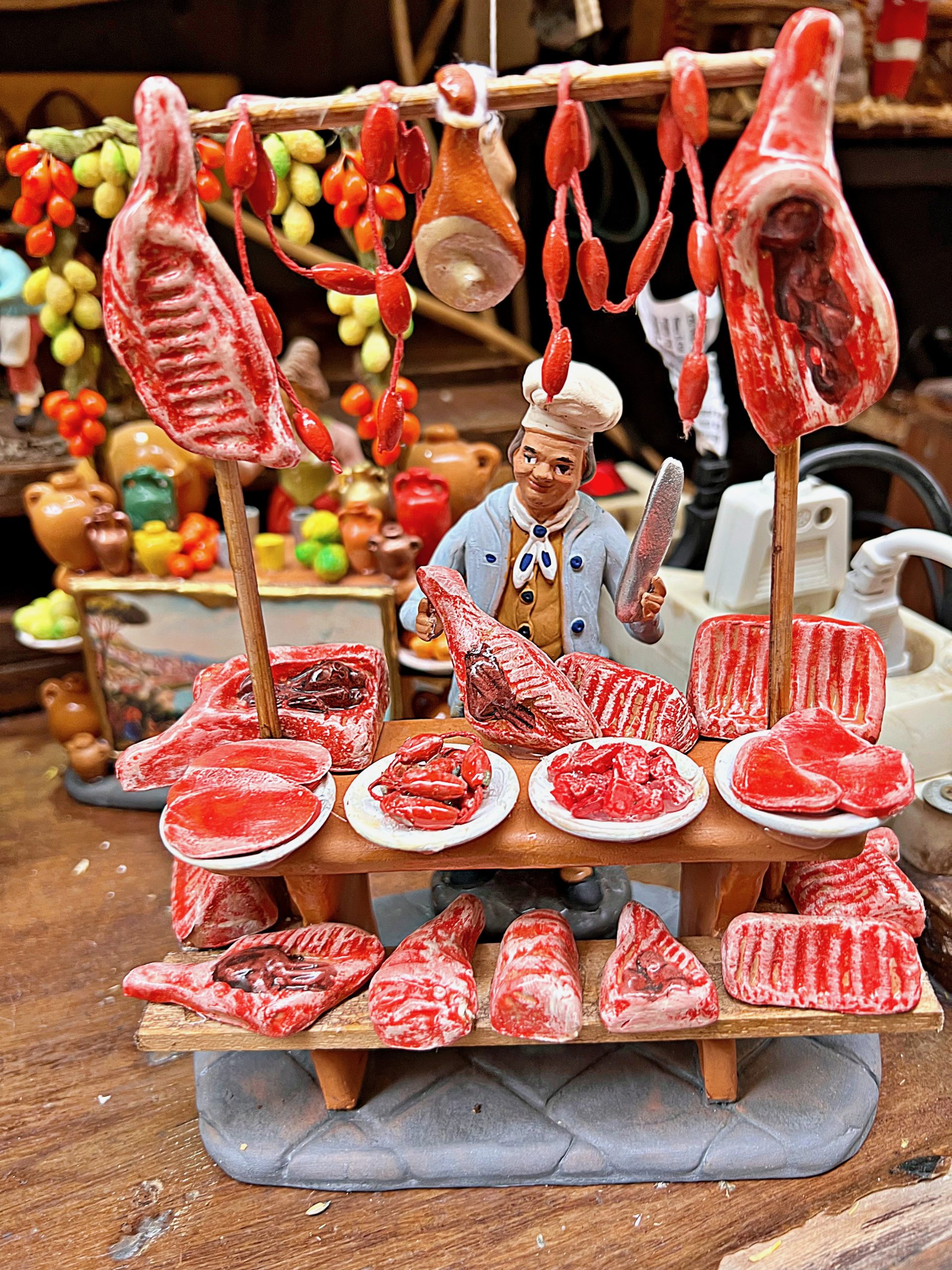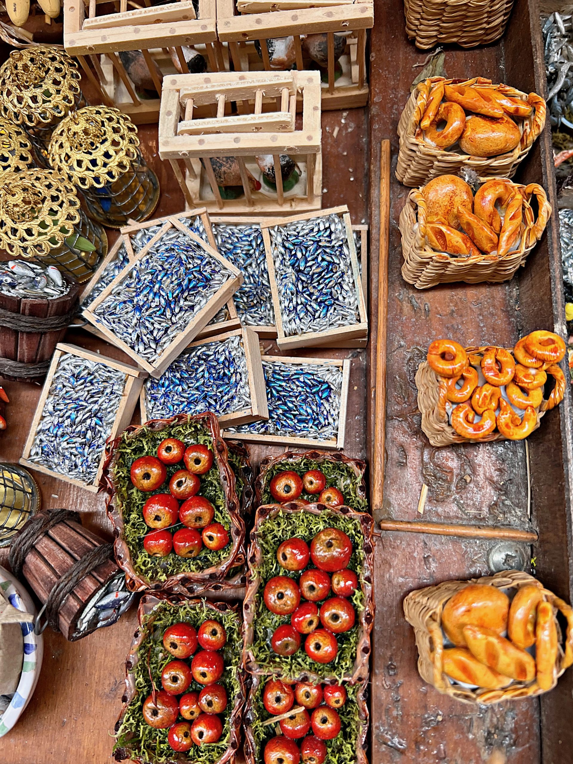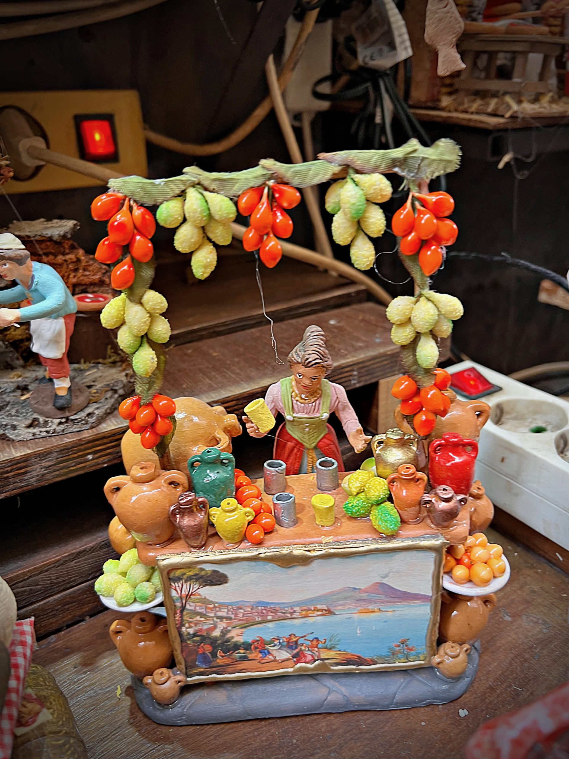 Naples is a great city to celebrate Christmas. There is the street San Gregorio di Armenia, which sells nativity scenes or ‘presepes’ . These miniature but extensive village scenes, with stables and even electric lights, featuring the birth of Jesus, can be very expensive, ranging from 500 euros to 5000. Every year Neapolitans add something to the scene: a new figurine, be it traditional or a modern celebrity, or an animatronic market stall seller or pizza maker. When I visited in June, the most popular royal family figure was the Queen; now King Charles dominates alongside a naked Prince Harry in Vegas.
