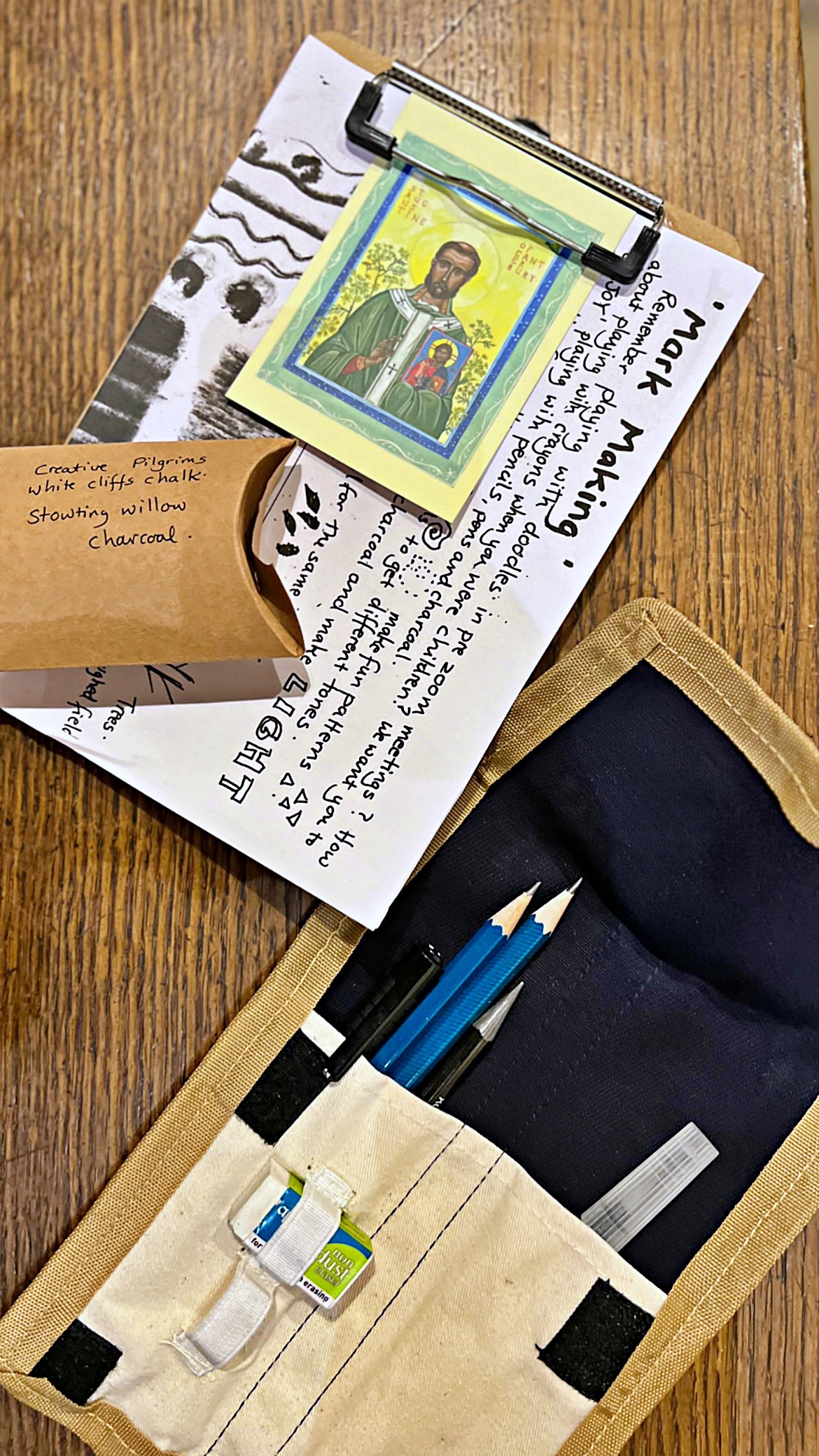 In the afternoon we took up charcoal, chalk (local, from the white cliffs) and sketchbook with Creative Pilgrims, run by photographer Liz Garnett and iconographer Alexandra le Rossignol.