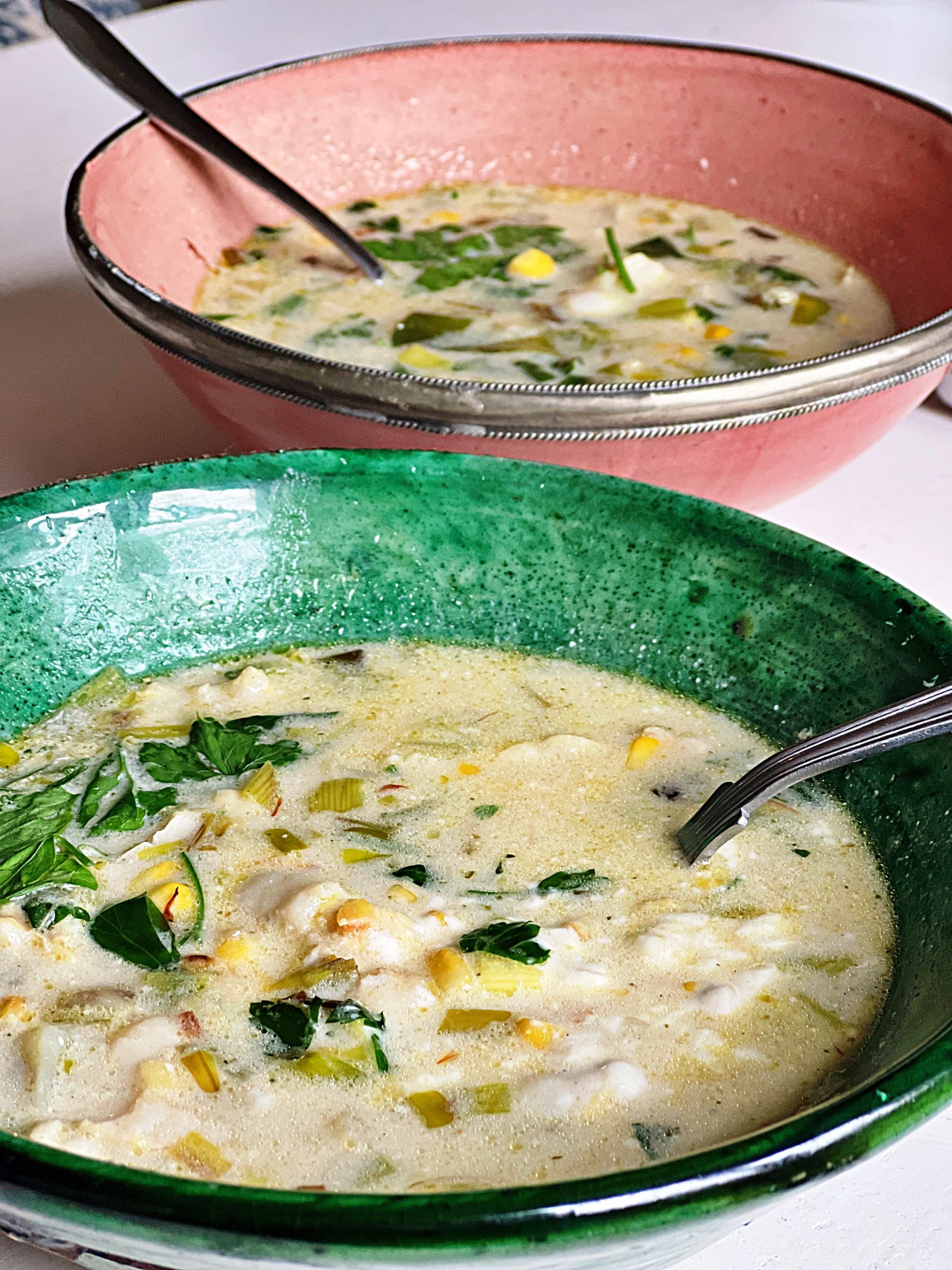 Together we made a warming thick soup full of vegetables, fish and cream. It was just the ticket and I’ve made it again now I’m home. Here is the recipe and also some pictures of Claire’s beautiful home.