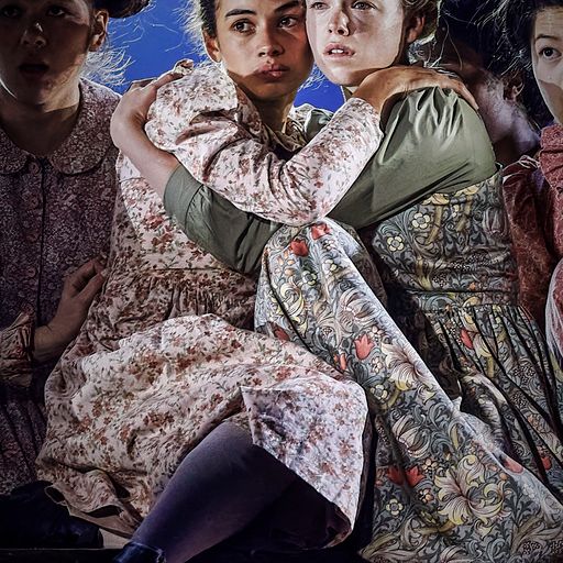 A sheet of rain between the audience and the stage was the first thing we noticed while taking our seats at the opening night of The Crucible at the elegant Gielgud Theatre in June. It was so impressive I had to go up close to see how it worked (it poured into a kind of sink so didn’t flood the stage). This dramatic downpour bookended each act of the play, which otherwise featured simple staging; a bed, some tables and chairs. Our eye was drawn to the costumes worn by the cast of girls: pretty, floral dresses over long-sleeved Peter Pan collar shirts, evoking innocence and giving me wardrobe envy.