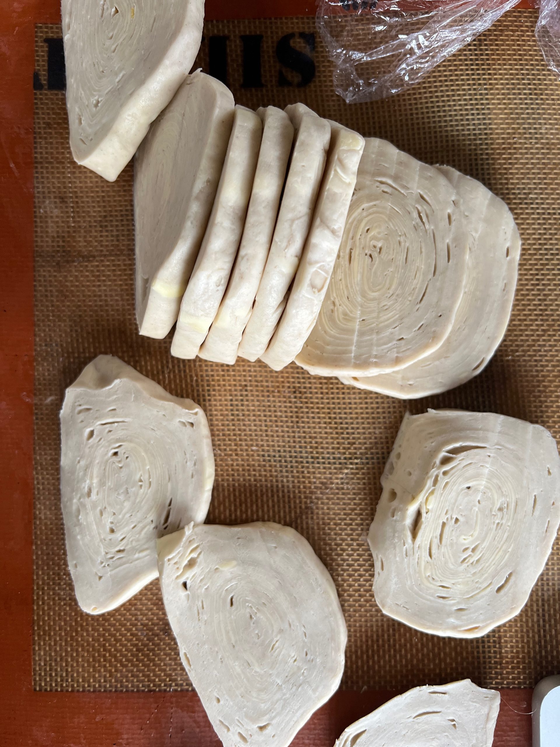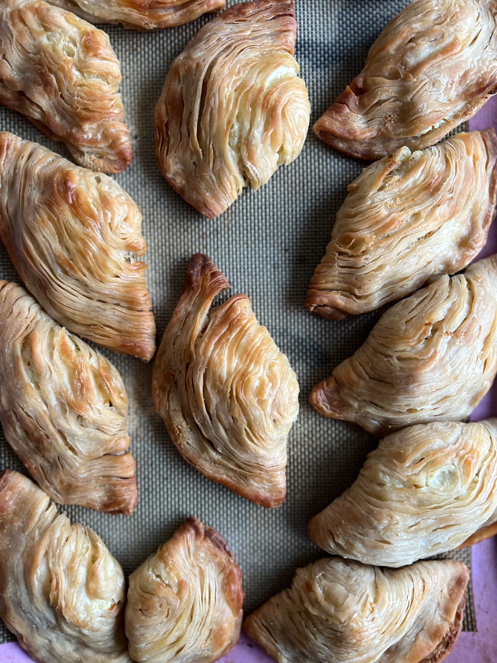 My advice: don’t lose faith. When trying to form the cones, I felt like I was squashing the dough too much and that all the patiently formed thin layers would disappear. But they came back to life in the oven and you could see all the layers.