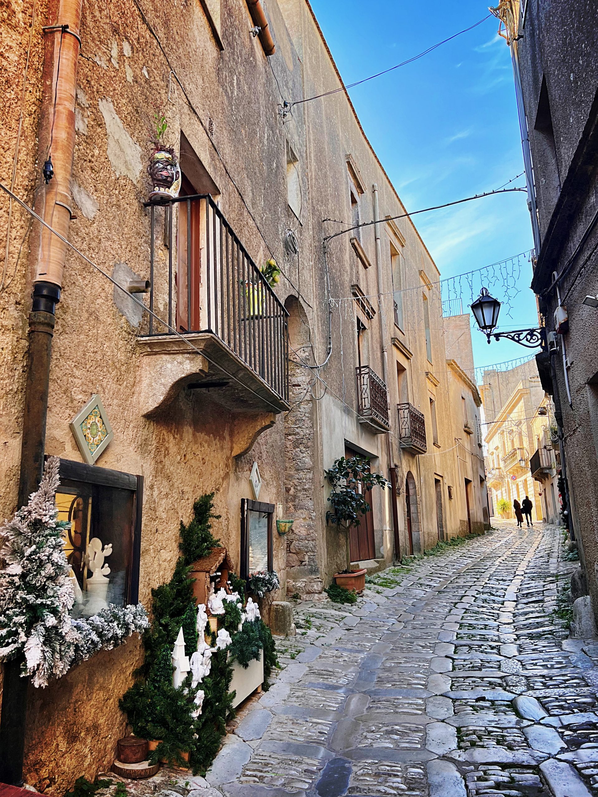 Softly lit, a rose gold gem, Noto, famous for Baroque architecture, isn’t too far from Catania. At the end of November, the churches, shops and streets were ready for Christmas, with nativity scenes, twinkling lights and giant stacks of wrapped presents.