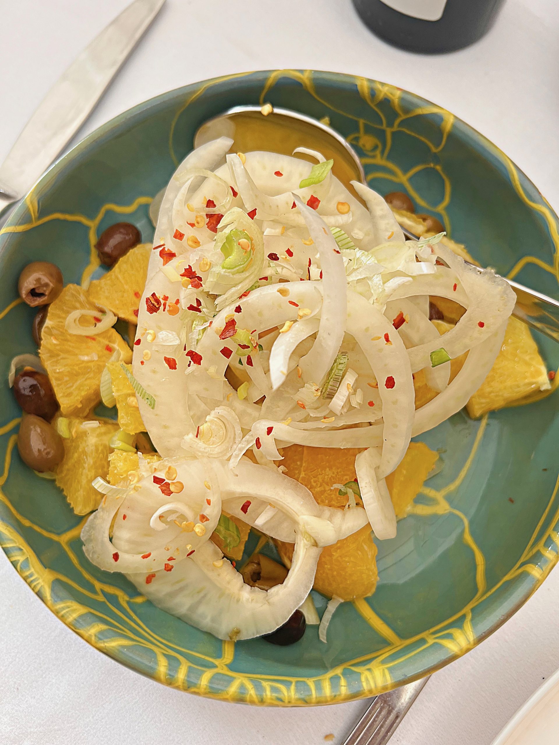 Featured in The White Lotus, the town has become more popular with tourists. I ate at Nachè, which had really good food. I had an orange, olive and fennel salad, and a saffron and fig risotto – both excellent. I must try making this risotto.